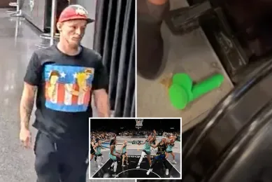 唐人日报8月22日讯:一场原本紧张热烈的WNBA比赛,因为一名观众的荒唐举动而引发轩然大波。警方表示,来自俄亥俄州代顿的32岁男子查尔斯·伯吉斯(CharlesBurgess)在8月5日晚纽约自由队对阵达拉斯飞翼的比赛中,竟然从看台掏出一个柠檬绿色的性玩具,并将其朝球场方向抛掷,不料击中了一名12岁女孩的腿部。
