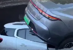 现场照片显示,塌陷区域形成巨大坑洞,车辆半身陷入,场面触目惊心。事发后,当地有关部门迅速到场封锁现场,设置围挡并展开调查。
