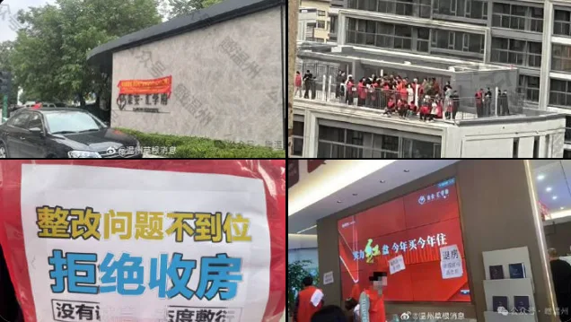 唐人日报11月29日讯:近日,温州荣安汇学府多名业主因不满商品房存在诸多质量问题,集体坐在小区楼顶边缘抗议维权。业主拒绝收房,并在小区内拉横幅表达诉求,部分人甚至站上楼顶要求退房。