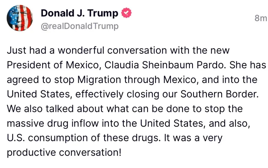 特朗普以强硬的移民政策著称,他需要通过实质性的政策成果来兑现竞选承诺。而谢因鲍姆则希望借此表明墨西哥能够独立应对移民危机,避免美国采取更严厉的经济制裁的同时,获取更多经济报酬。