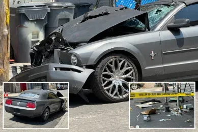 唐人日报7月4日讯:一辆福特野马在纽约市布朗克斯区失控冲上人行道,不仅撞上脚手架,还撞伤6名行人后,司机与乘客弃车逃离现场,引发市民恐慌。