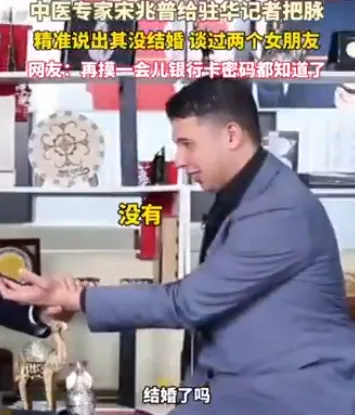 唐人日报3月15日讯:近日,杭州,一场中医传统把脉活动中,中医专家宋兆普凭借其深厚的中医诊断技巧,准确揭示出一位驻华记者的私人生活细节,包括其未婚状态及过往的恋爱经历,此举引发了广泛的关注和讨论。