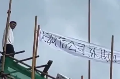 中山市场惊现“空中维权”!工人站脚手架顶讨薪:2万平变3万平,工资却没了