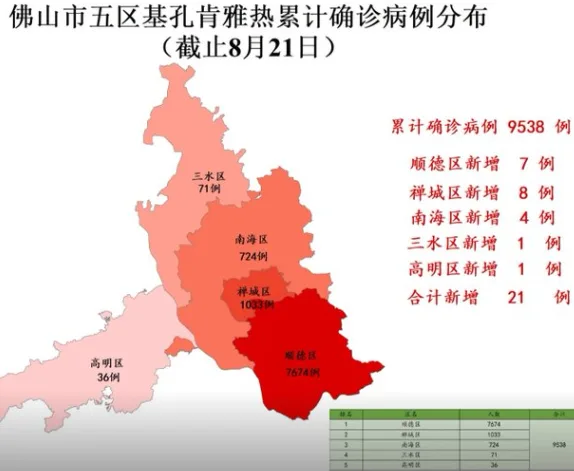 唐人日报8月25日讯:截至8月21日,广东佛山基孔肯雅热累计确诊病例已突破9538例,成为近年国内罕见的登革热类病毒大规模暴发之一。病例数字的持续攀升,让这座制造业重镇骤然成为全国公共卫生焦点。