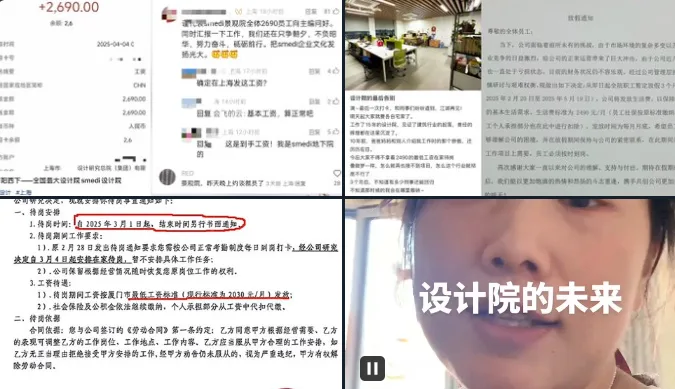4月18日,有网友在社交平台披露,上海龙头设计院SMEDI目前部分员工仅领取上海市最低工资2690元,消息一出,引发业内震动。浙江城乡综合设计院早在2月就已传出待岗通知,称公司多年持续亏损,决定安排员工待岗三个月,仅发放最低工资2490元/月。一名员工感叹:“十年前,父母还为我自豪,如今连项目都接不到了,行业就这样突然垮了。”