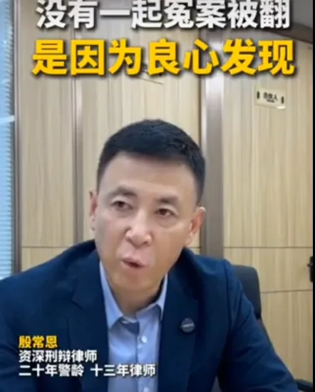 他指出,所有冤案的真相能被揭露,往往都是媒体、家属和律师通过持续努力和奔走,迫使公检法启动程序,最终让案件真相大白,沉冤得以昭雪。殷常恩的发言反映了对我国司法体制中冤假错案处理的深刻思考。