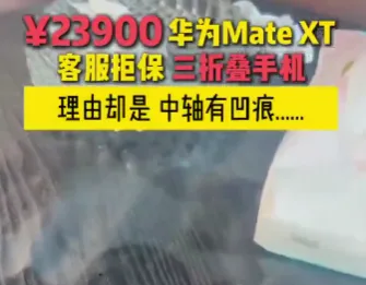 华为三折叠手机屏幕失灵遭拒保!网友怒斥:2.4万元买的手机,客服称“中轴凹痕不保修”