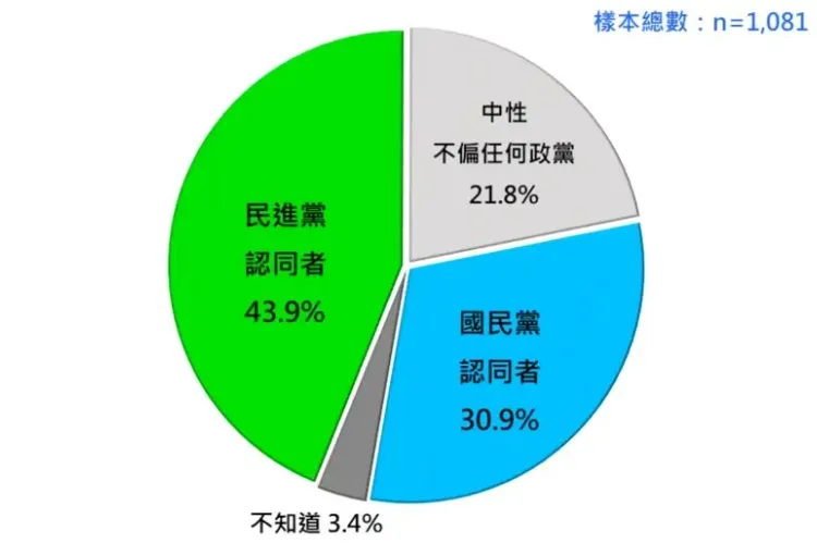 唐人日报2月19日讯:近日,台湾民意基金会最新民调显示,43.9%的民众认同民进党的理念与主张,30.9%则倾向国民党。约21.8%的民众表示不偏向任何政党,3.4%选择不回答或不知。