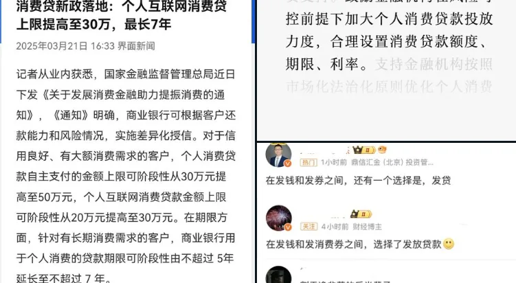 然而,这一政策的出台引发了部分网民的质疑。许多人在社交媒体上表示,“国家在发钱和发消费券之间,选择了发放贷款…”这表明,有些人担心消费贷款的扩大可能导致负担加重,而非直接解决居民的消费能力问题。