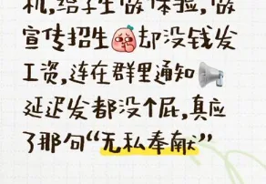 “有钱搞直升机体验招生,没钱发我们教师的工资,连通知延期发薪都不敢说一句”,这名教师愤怒表示,“天天喊无私奉献,到头来真成了免费劳工”。
