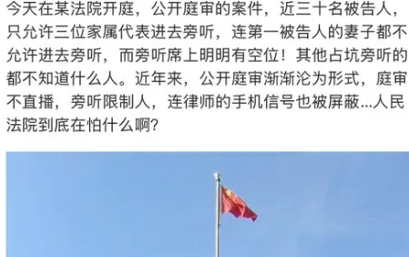 律师怒斥法院“假公开”:30人案件仅准3名家属旁听,旁听席却大量空置!