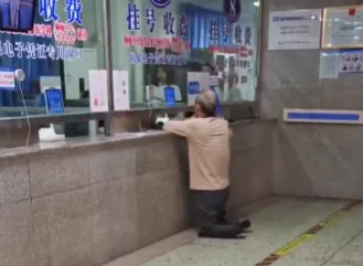 成都医院现“丁义珍式”窗口 老人跪地办理业务引发热议