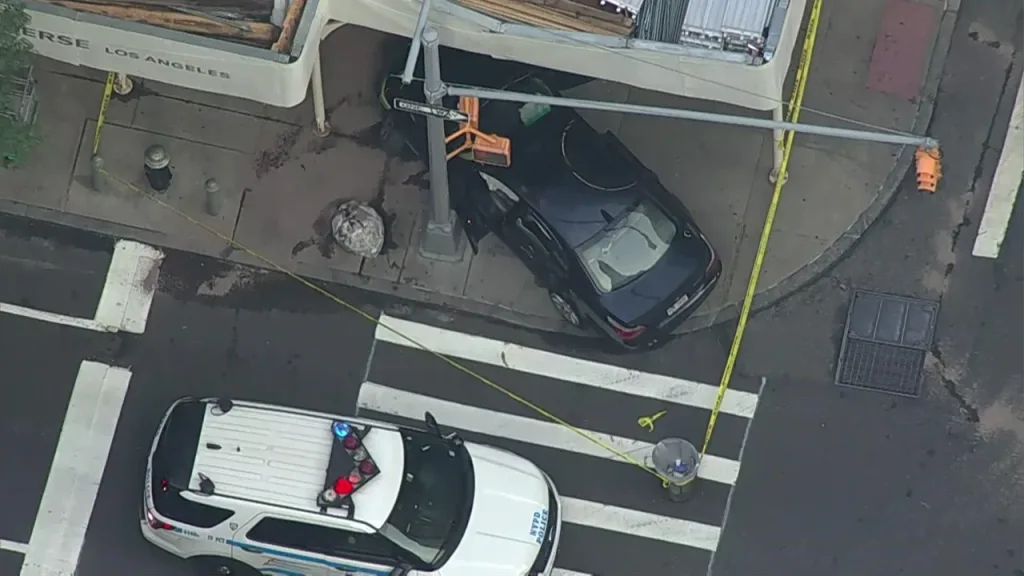 纽约市消防局(FDNY)表示,事故发生在凌晨5点45分左右,地点位于麦迪逊大道东84街与东85街之间。一辆SUV冲上人行道后撞上建筑外的脚手架,并被卡在其中,险些酿成更大灾难。航拍画面显示,现场似乎涉及两辆汽车,其中一辆停在斑马线附近,另一辆夹在倒塌的脚手架下。