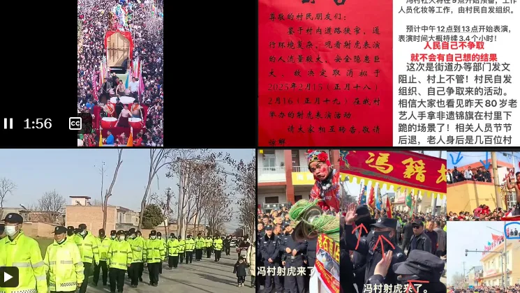 唐人日报2月16日讯:近日,一年一度的西安长安灵沼冯村射虎社火在广大村民的强烈要求下,经过自发组织成功举办。此前,12日当局因道路狭窄发布通告禁止此次活动,引发村民不满。村民通过网络发布视频号召周边民众前来观看。15日,活动如期举行,现场观众人数达到7-8万人。