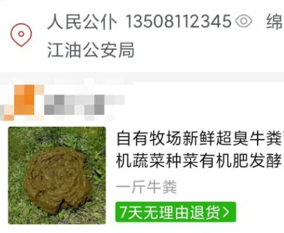 据悉,该网友在快递单上明确收件人写的是“江油市公安局”,寄件内容则注明为“新鲜牛粪,纯天然,无添加”,甚至在备注中附言:“请原味查收,敬表民意。”这一举动迅速在社交平台引发热议,有网友讽刺:“终于有人把‘有话不好说,就寄点实在的’贯彻到底。”更有人直言:“一斤牛粪,比千言万语都清晰。”