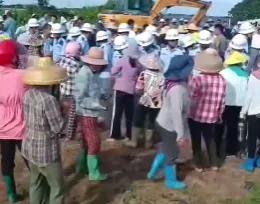 然而,等待他们的并不是调解与对话,而是大批全副武装的防爆警察。现场视频显示,手持盾牌和警棍的警力在农场入口处列队,与手持横幅和标语的村民对峙。部分村民情绪激动,高声呼喊“还我土地”“要合理补偿”。在高温烈日下,这场对峙持续数小时,双方气氛剑拔弩张。