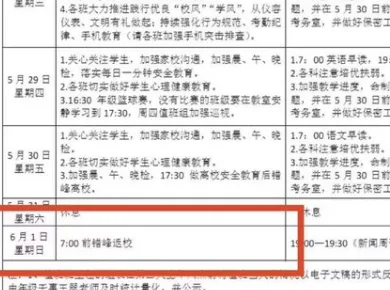 唐人日报5月28日讯:端午假期本应是学生与家人团聚、放松身心的重要时段,但有家长反映,海口市第一中学却要求学生在节日期间返校补课,引发广泛质疑。据悉,该校安排学生在6月8日至10日期间集中返校,进行统一教学活动,部分年级甚至每天上满6至7节课,形式与正常上课几无区别。