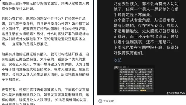 她强调,哪怕在婚姻关系中,强制性行为也可构成强奸罪,“婚内强奸早已被法律和社会认可”,更遑论尚未登记结婚的订婚阶段。