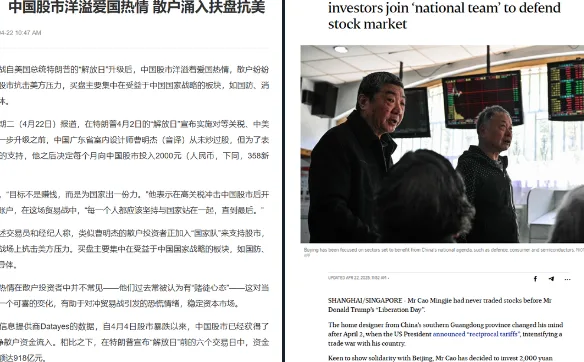 中美经贸关系持续博弈之下,A股正成为另一处舆论与资本的交锋场。而这一波散户“挺股护国”的热情,也折射出中国普通民众在国家战略面前前所未有的参与度和认同感。