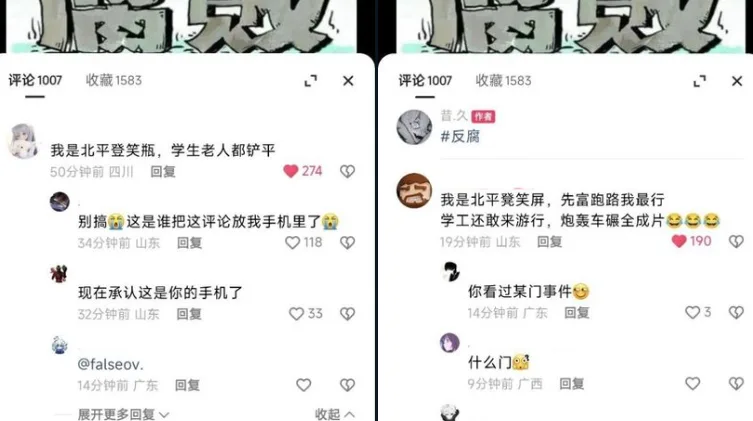 唐人日报2月4日讯:近日,社交媒体上一幅反腐宣传插画引发广泛讨论。部分网民在评论区发表激进言论,其中一名用户提到“我是北平登笑瓶(邓小平) 学生老人都铲平”,这一言论引起了众多网友的关注和争议。