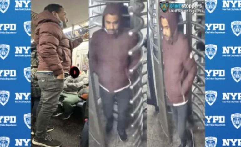 据纽约市警局(NYPD)发布的通告,嫌疑人为一名男性,身高约5英尺10英寸,穿着一件黑色外套、深色牛仔裤和黑色运动鞋。目击者或有相关信息的人可通过短信或电话提供线索。警方提供的举报方式包括拨打或发送短信至NYPD提示热线(TIPS)8477。
