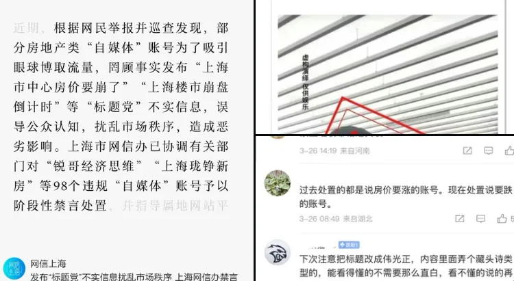唐人日报3月27日讯:近日,上海市网信办发布通告,指出部分房地产自媒体在网络上发布“上海市中心房价要崩了”、“上海市崩盘倒计时”等不实信息,造成了不良社会影响。为此,网信办已协调相关部门对98个涉事自媒体账号进行了禁言处理,以维护网络信息传播秩序和房地产市场稳定。