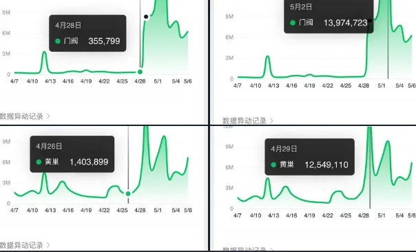 据微信指数数据显示,“门阀”一词的搜索量自4月28日的35万余,短短四天内暴涨至5月2日的近1400万,增长近40倍;而象征平民起义与反抗的“黄巢”,搜索指数则从4月26日的140万激增至4月29日的1254万,显示出大众对社会不公的情绪正在快速聚集。