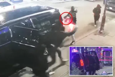 监控录像显示,乘客在上车前与一名女子拥抱,随后两名男子从一辆挂马萨诸塞州车牌的吉普大切诺基中跳出,将乘客团团围住。女子察觉异常逃离,嫌疑人拔枪对准乘客,乘客慌忙跳入车辆。