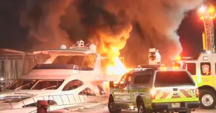 唐人日报3月9日讯:迈阿密戴德县西北部三艘游艇周五凌晨起火烧毁,引发大规模消防救援行动。事发于3:34左右,30多个消防单位迅速响应3250 NW North River Dr附近的火警。到场后,消防员发现两艘60英尺和一艘90英尺的游艇被火焰完全吞没。