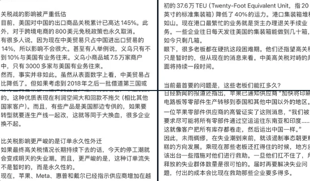 文章指出,尽管有观点认为中美贸易仅占中国进出口总额的14%,影响有限,但这一数字并未反映真实冲击。一批依赖美国市场的企业早已通过第三国转口等方式规避表面数据,但实质上仍严重依赖美国订单。