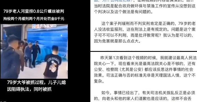 唐人日报3月9日讯:近日,湖南长沙市发生一起涉及79岁老人非法捕捞的案件,引起了广泛关注和争议。据报道,该老人在湘江捕捞了几条泥鳅、几个小螃蟹及几个螺丝,总重不足0.8公斤,却被当地法院以破坏水产资源为由判处两个月拘役、缓刑两个月,并处以8000元罚款。