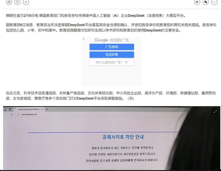 韩国教育机构屏蔽DeepSeek平台