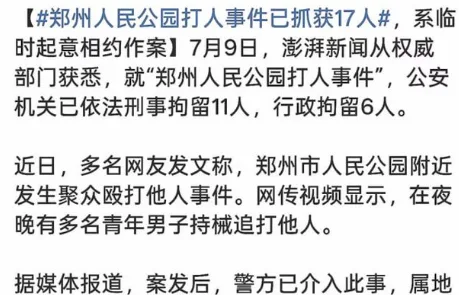 17人落网!郑州人民公园殴打性少数群体案告破,官方:系临时起意作案