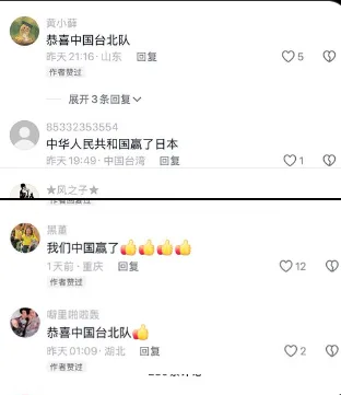 不少中国网友以“台湾省队”身份祝贺这一胜利,评论中出现诸如“中华人民共和国赢了日本”“祖国万岁”“恭喜台湾省队”等言论。这种表达方式引发不同讨论,有网友认为是幽默调侃,也有人认为涉及敏感议题。此次比赛成绩也使台湾棒球实力再次受到国际关注。