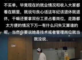 同时,也有从业者爆料返聘人员带来的实际困扰。有网友吐槽:“我们医院的返聘护士长从不干活,检查时把责任推给年轻人,出了问题下属背锅,准备资料却全归功于她。”类似现象引发一线护士群体的不满与无奈。