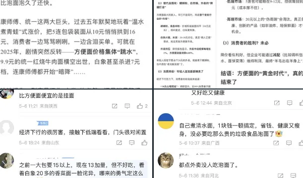 唐人日报5月8日讯:曾几何时,方便面是“穷鬼套餐”的代名词。然而,过去五年,康师傅、统一两大品牌默契涨价,5连包袋装面从10元悄然抬至16元,让不少消费者直呼“吃不起”。然而进入2025年,泡面价格突然集体跳水,统一推出9.9元的红烧牛肉面,白象更是杀进7元档,迅速引发市场热议。